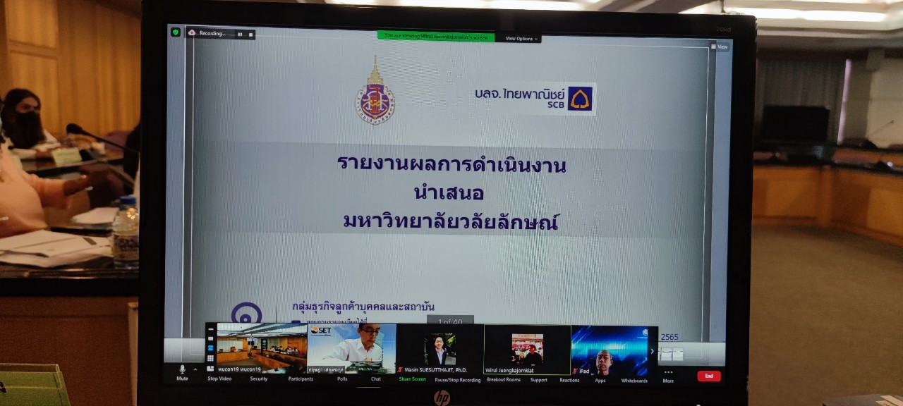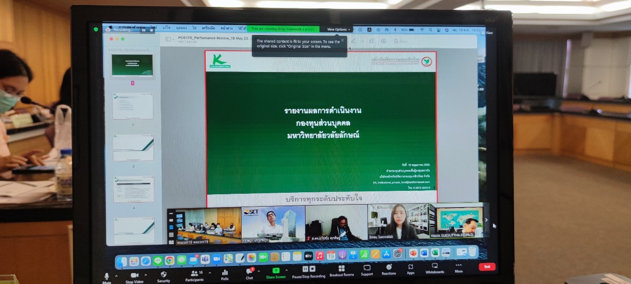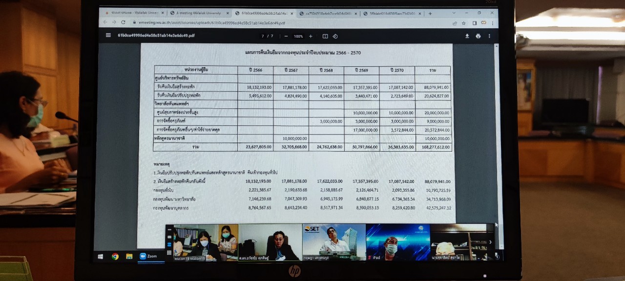 On Thursday, May 19, 2022, the Finance and Accounting Division held a meeting of the Finance and Property Committee at Walailak University No. 3, 2565, Meeting Room 1, from 1:00 PM to 4:00 PM. Walailak University Coordinating Unit, Moklan Room, 2nd Floor Administrative Building; and an online meeting with Zoom cloud meeting program, with an agenda to consider the projected cash flow statement and compare it to actual events. Furthermore, Walailak University’s financial statement report for fiscal year 2022, a 6-month period ended March 31, 2022, a report on accumulated money without obligation as of March 31, 2022, Walailak University Financial Statement Report, enterprise unit International Curriculum Project, special course project, which details the performance of three asset management firms as of April 30, 2022, as well as the audited financial statements for fiscal year 2021. There is a meeting schedule for the next meeting, No. 4/2565. Thursday, July 21, 2022, from 1:00 p.m. to 6:00 p.m.