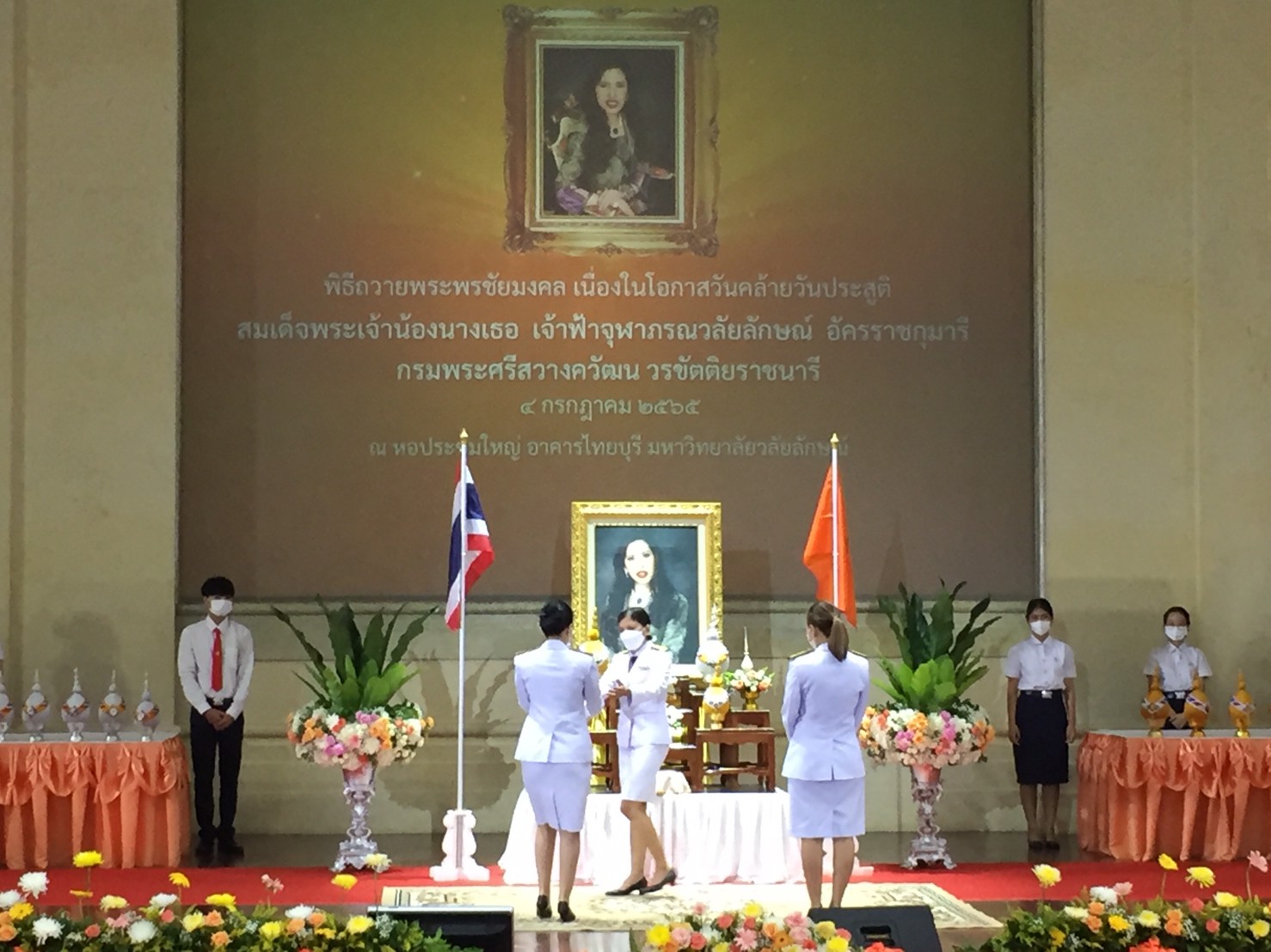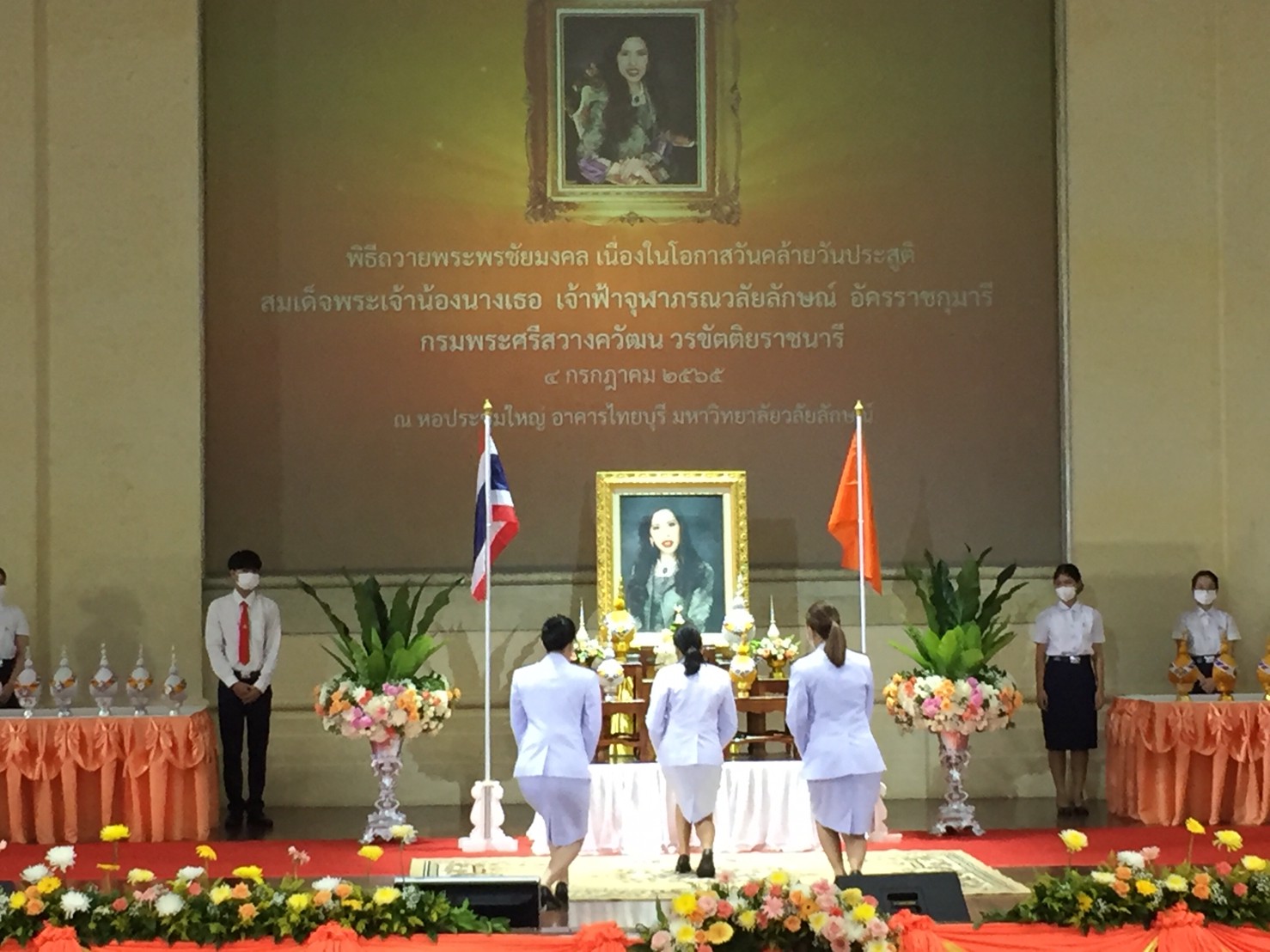 On the occasion, Prof. Dr. Sombat Thamrongthanyawong, Acting President of Walailak University, presiding over the blessing ceremony on the occasion ofHer Royal Highness Princess Chulabhorn Krom Phra Srisavangavadhana’s birthday; The ceremony was attended by representatives from government organizations, the private sector, and residents from the surrounding community, led by Mr. Trairat Chairat, Vice Governor of Nakhon Si Thammarat Province, Col.. Suwat Thongbai, Army Area Deputy Chief of Staff the 4th Area; Pol. Gen. Cherdchai Chotisut, Deputy Commissioner General Provincial Police of Nakhon Si Thammarat Province, to express loyalty and gratitude for His Majesty’s actions for the people and the nation, particularly in work in academic research, science development, public health work, cancer patient care, and related research.